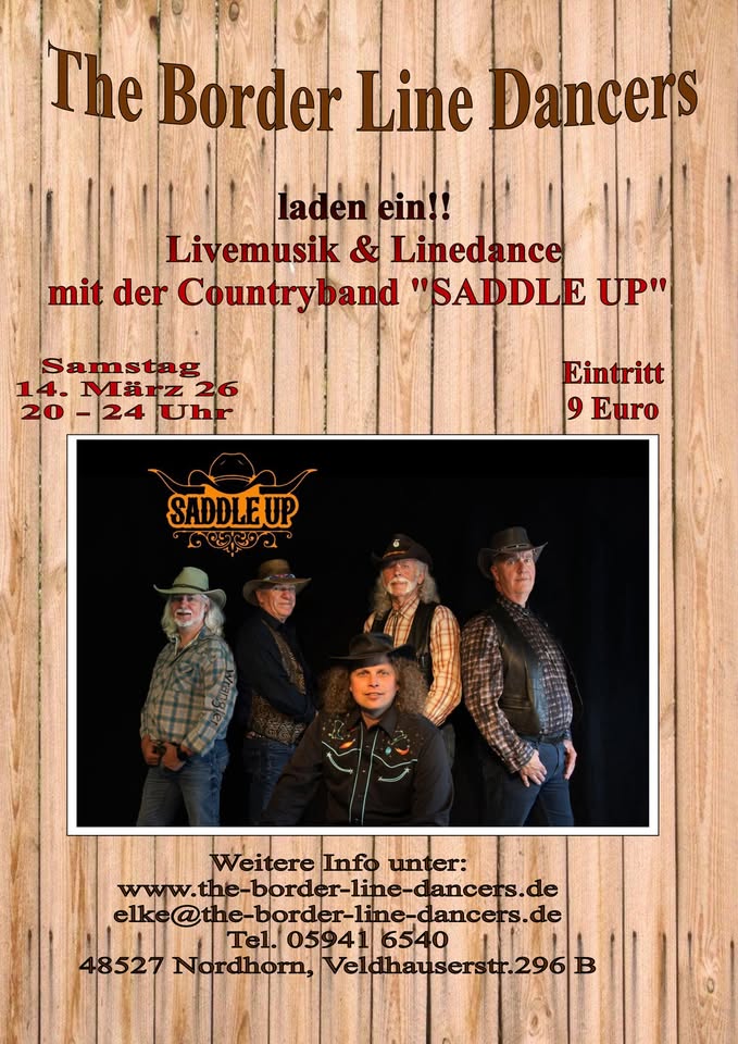 Zaterdag 14 maart - Livemusik & Linedance mit der Countryband Saddle Up